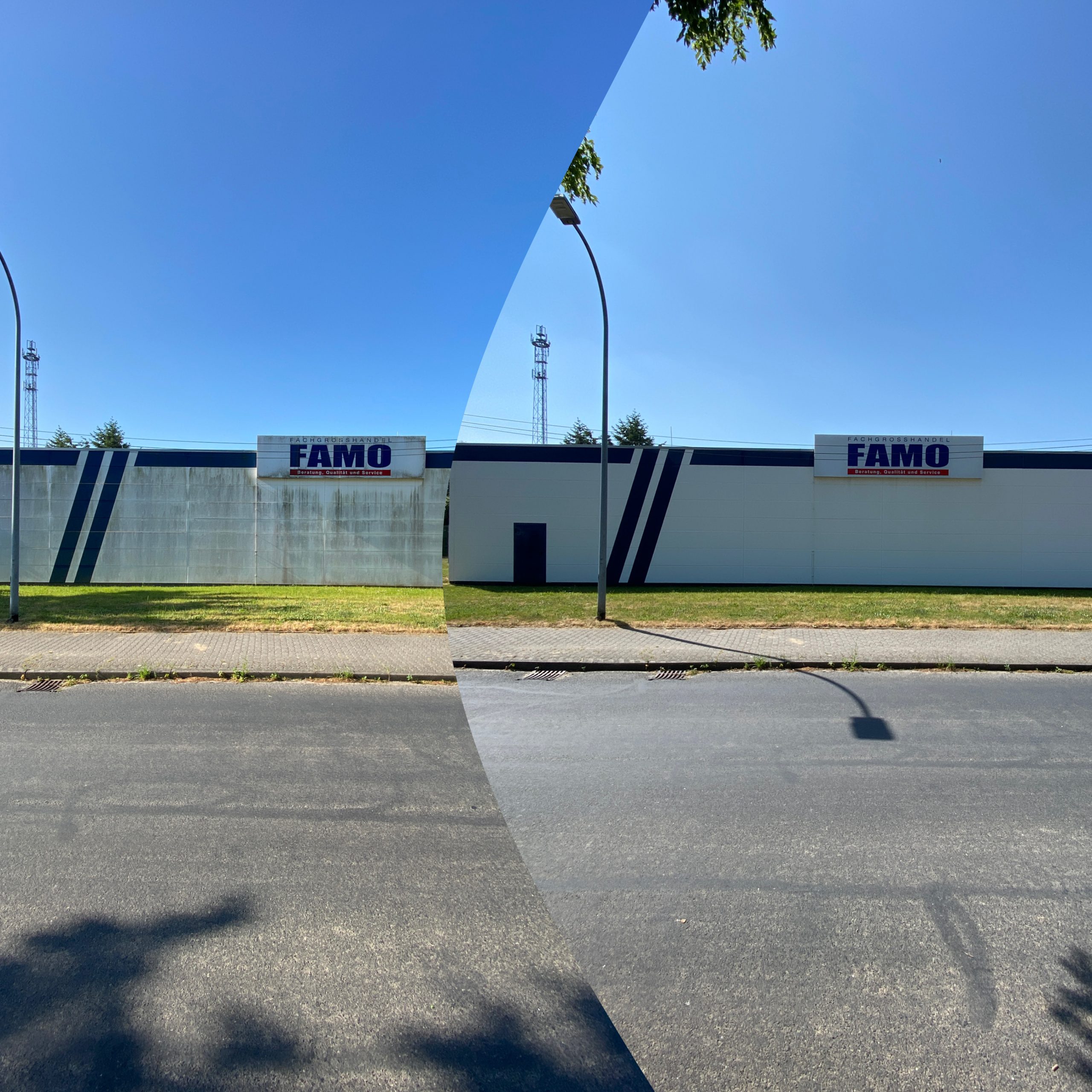 Durch eine 3-Phasen Reinigung mit hochwertigem Langzeitschutz, bieten wir Ihnen eine strahlende Fassade.